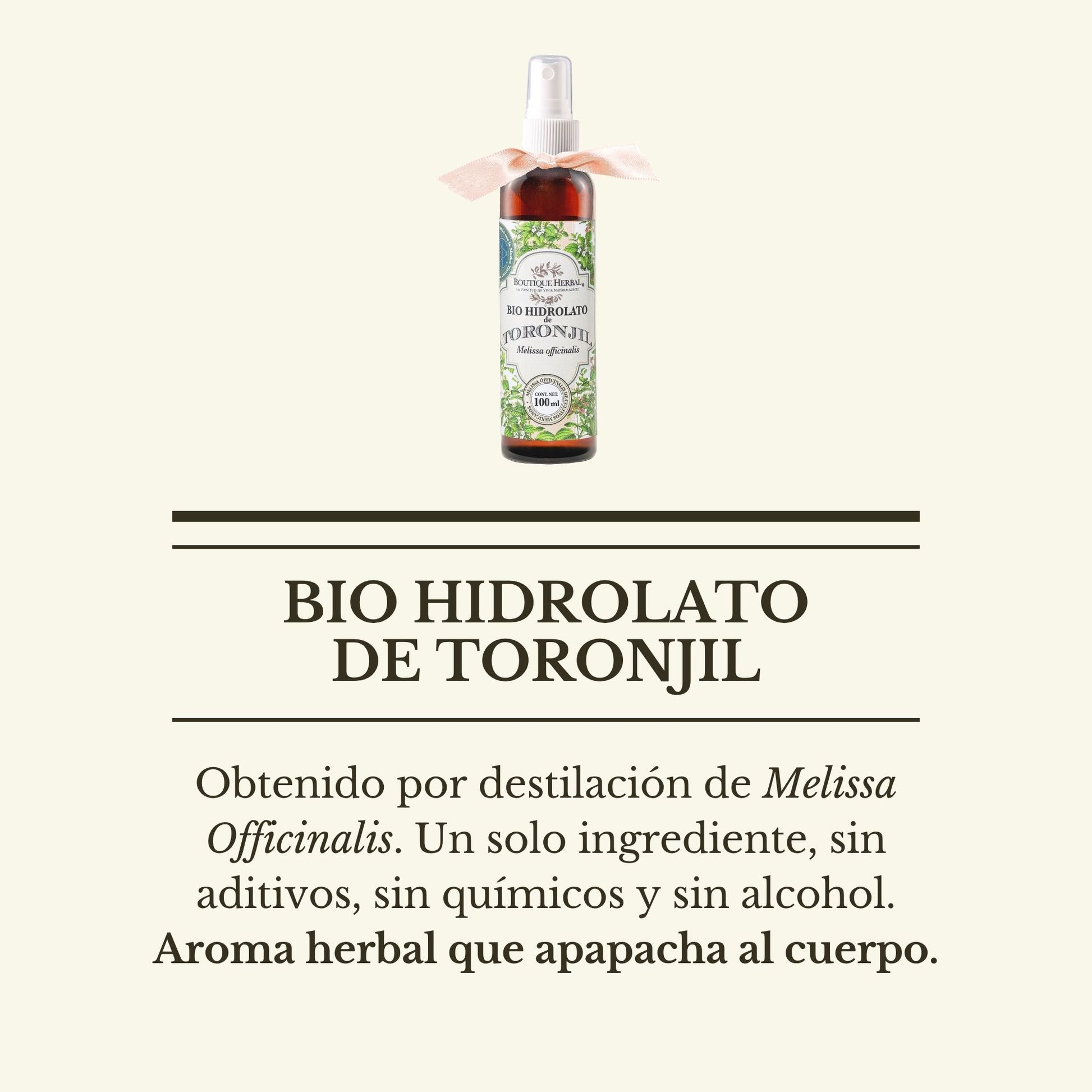 Obtenida de las hojas frescas de Melissa officinalis, conserva compuestos hidrosolubles como flavonoides, ácidos fenólicos (rosmarínico y cafeico) y trazas de aceites esenciales, reconocidos por su efecto calmante y purificante sobre la piel.
