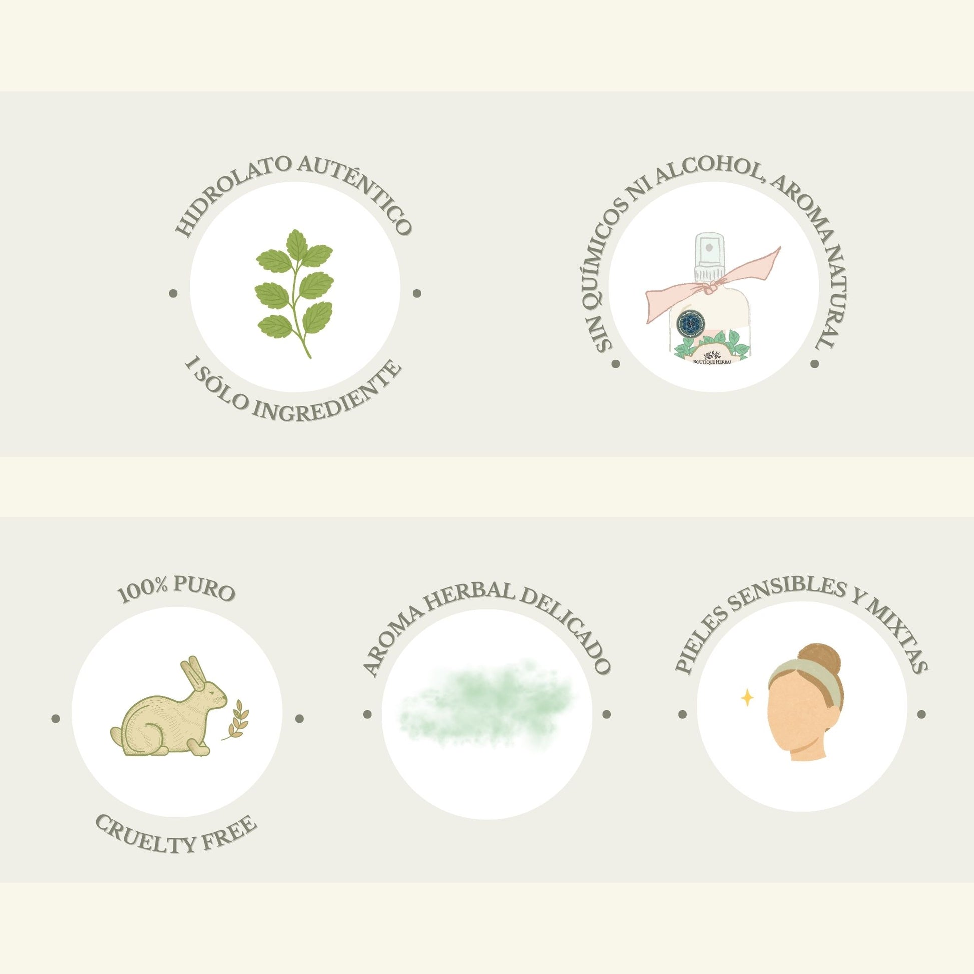 Es uno de los hidrolatos más frescos y equilibrantes.