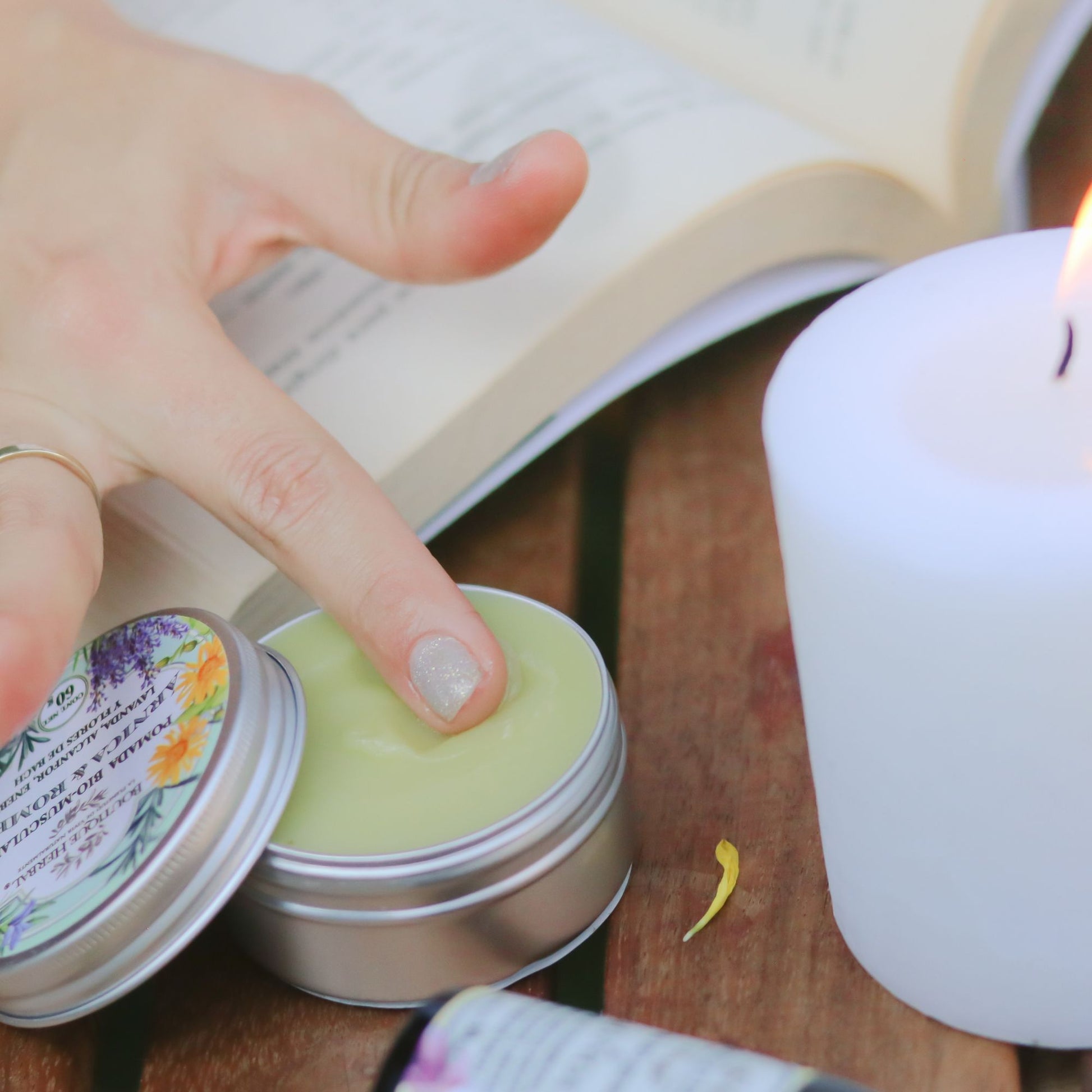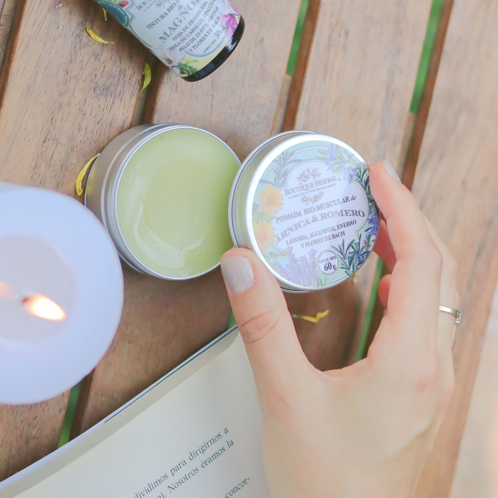 Pomada elaborada con aceites y extractos botánicos seleccionados, enriquecida con Flores de Bach para aportar una experiencia aromática reconfortante.